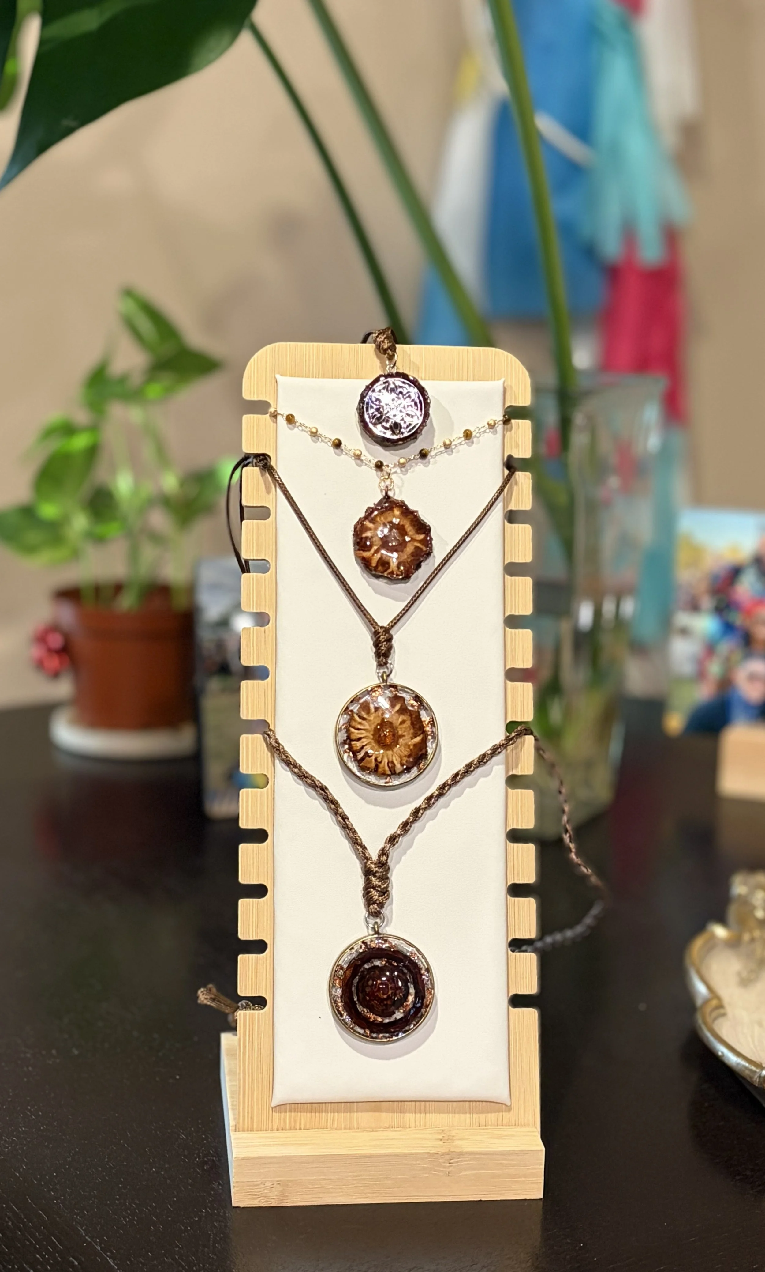 Each pinecone pendant is carefully handmade with love, making every piece completely unique, just as nature intended. I am in the process of updating my shop, but if you wish to request a custom piece, please visit the contact page and reach out.